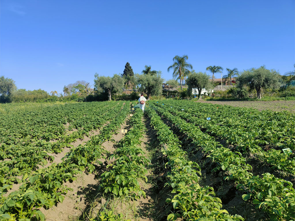 Essere in Sicilia non è un limite ma una risorsa: operare sul territorio siciliano ci permette di impostare prove di campo tutto l’anno e far partire prove “fuori stagione”, come nel caso della patata, del mais, del girasole e della soia.